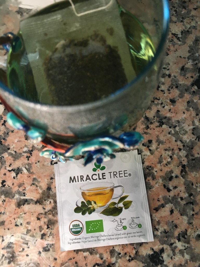 This tea is made from organic moringa oleifera leaves and organic decaffeinated green tea leaves.