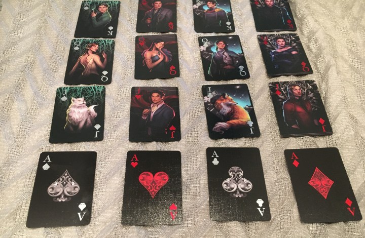 • Foiled Playing cards designed by @arz28 inspired by The Shadows Between us by Tricia Levenseller, The Beautiful by Reneé Ahdieh, Sorcery of Thorns by Margaret Rogerson, and Even the Darkest Stars by Heather Fawcett