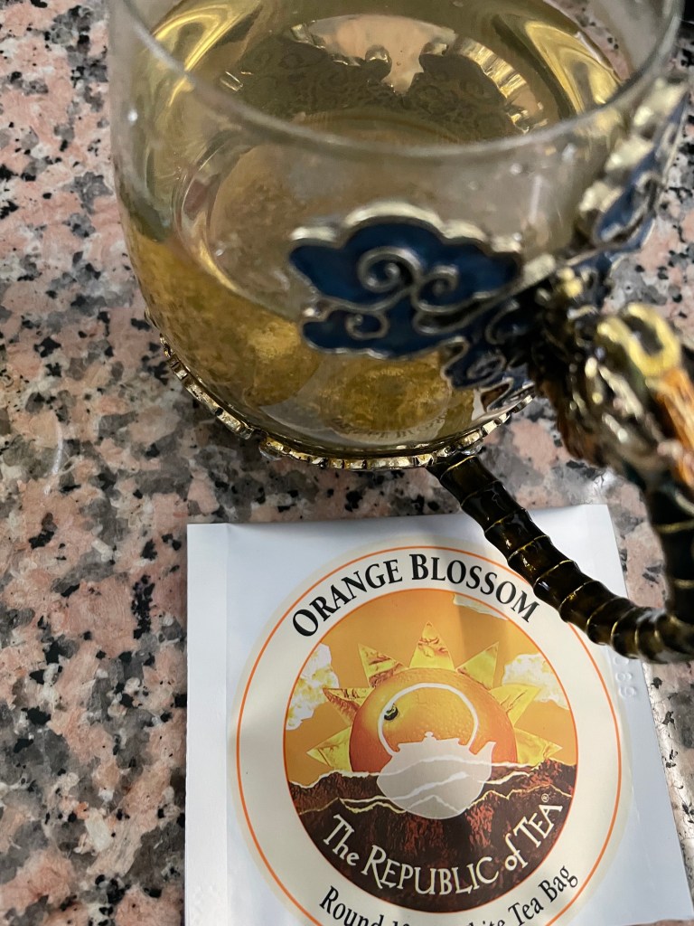 This tea is a strong white tea base with a hint of orange. Its not bad but it is not a tea I would go out of my way to drink. If you like teas with a hint of another flavor, I recommend this one. I’d also recommend adding a bit of sugar to help sweeten it up.