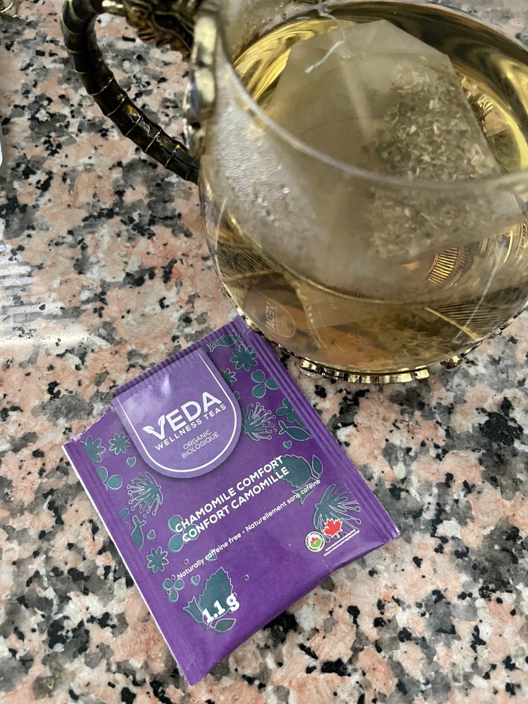 This tea is made from organic chamomile, organic lavender, and organic fennel seeds.